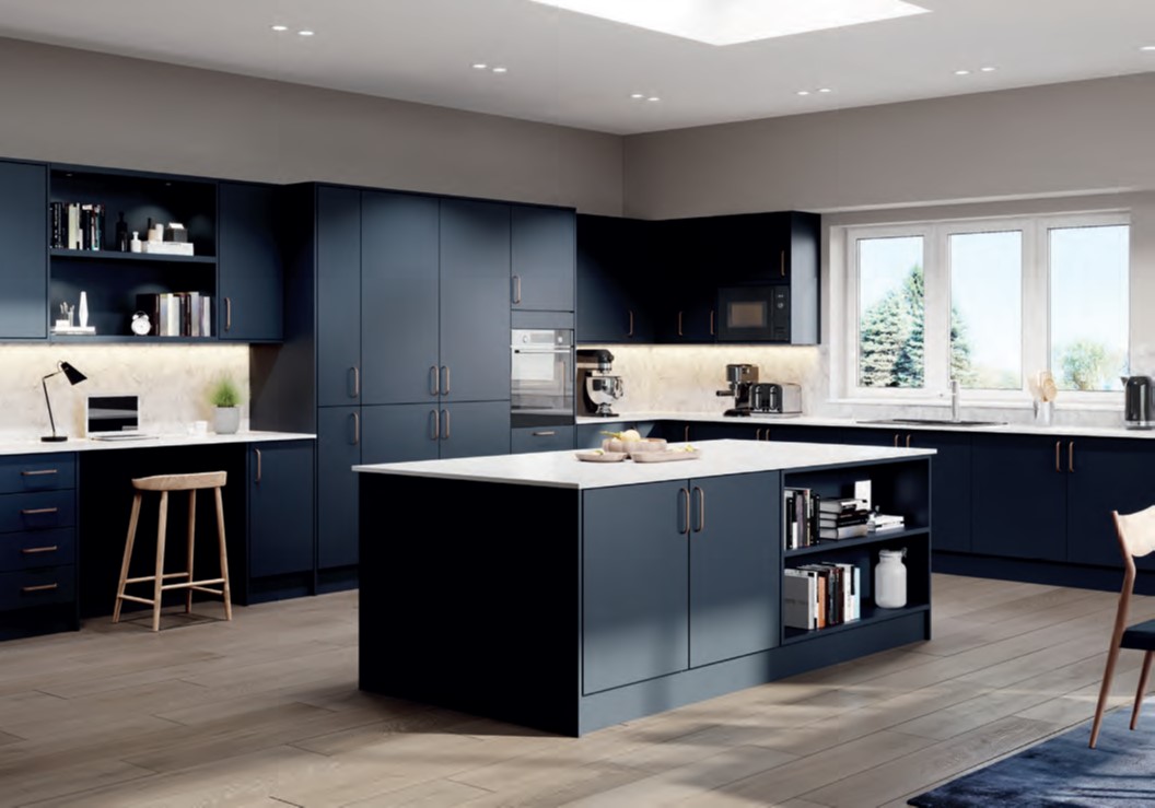 Indigo injects some vibrancy into the kitchen and makes your furniture the focus of the kitchen. Our new walk in larder provides stylish storage and adds a functional feature to your kitchen..